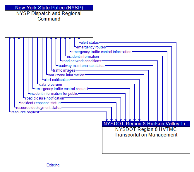 Current and forecasted traffic information, road and weather conditions, and other road network status. Either raw data, processed data, or some combination of both may be provided by this flow. Information on diversions and alternate routes, closures, and special traffic restrictions (lane/shoulder use, weight restrictions, width restrictions, HOV requirements) in effect is included.