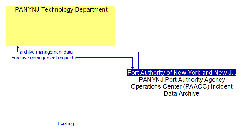 PANYNJ Technology Department to PANYNJ Port Authority Agency Operations Center (PAAOC) Incident Data Archive Interface Diagram