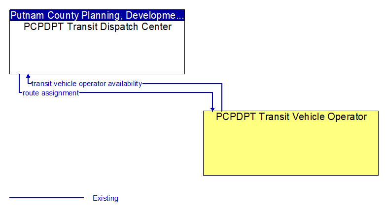 PCPDPT Transit Dispatch Center to PCPDPT Transit Vehicle Operator Interface Diagram