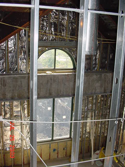 Back of TMC showing HVAC units, bricklaying and roofing progress. |