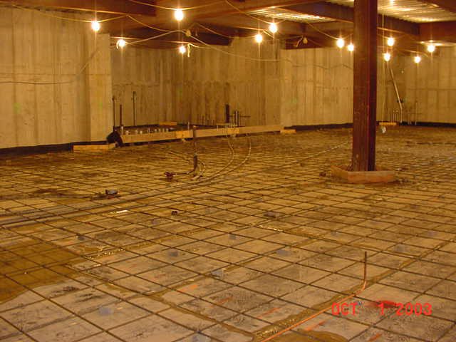 Setting the gas tank into the ground on a concrete pad. |