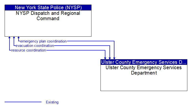 NYSP Dispatch and Regional Command to Ulster County Emergency Services Department Interface Diagram