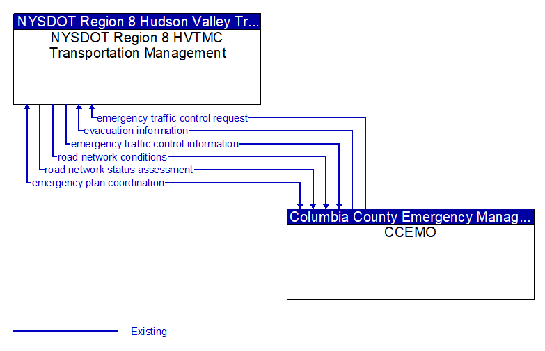 NYSDOT Region 8 HVTMC Transportation Management to CCEMO Interface Diagram