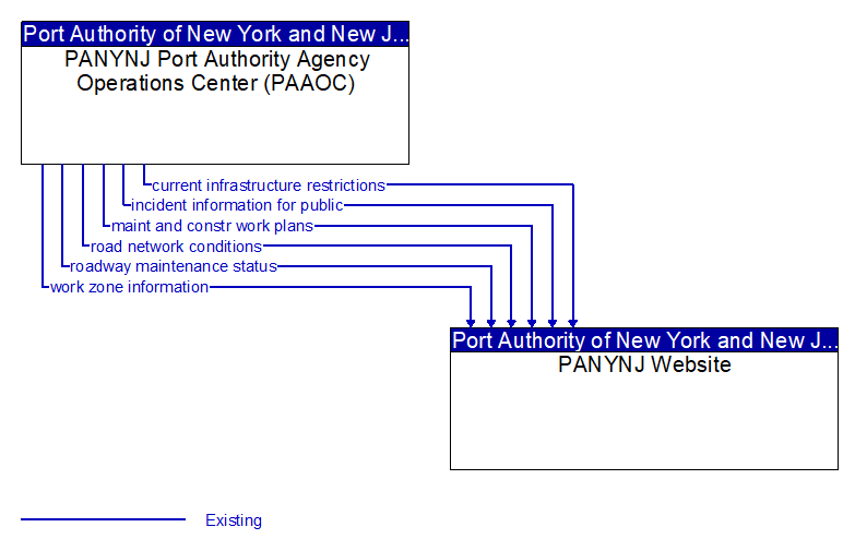 PANYNJ Port Authority Agency Operations Center (PAAOC) to PANYNJ Website Interface Diagram